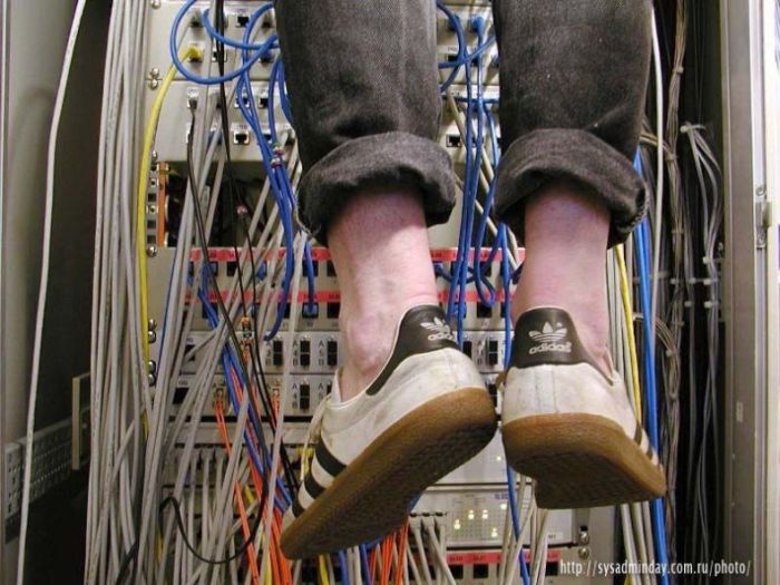 Admin... o meu emaranhado de fios da minha rede central de distribuição de internet via rádio, via cabo e para a lan house está bem parecida com alguns destes ai...