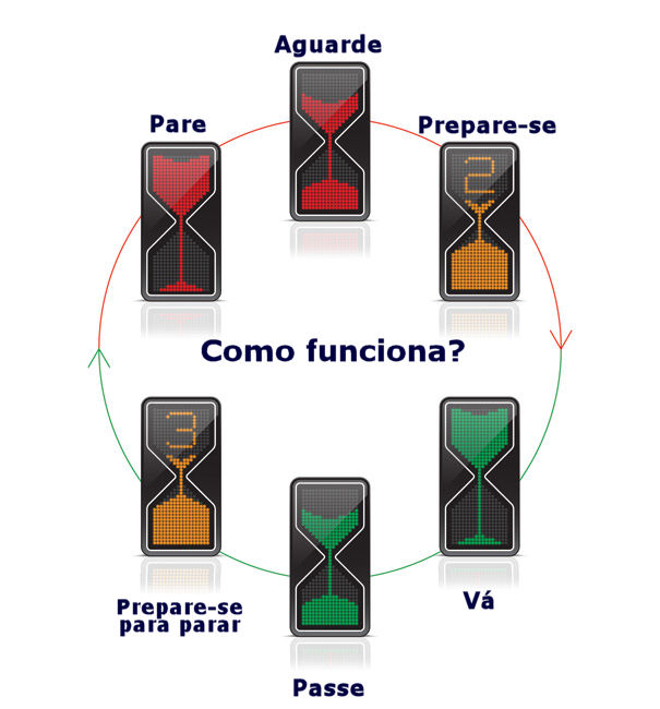 Como funciona? usando as três cores habituais, vermelho, amarelo e verde para indicar a parada, atenção e trânsito livre. A diferença é que por meio da