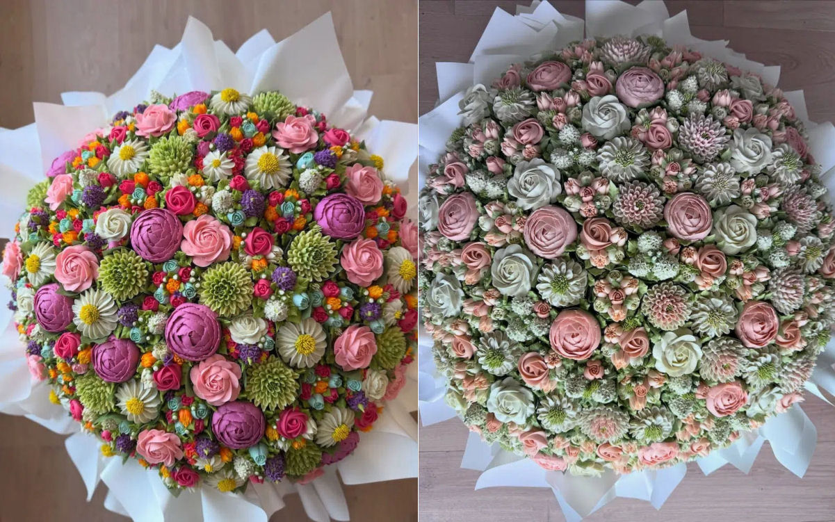 ![]() | Receber um buquê de flores é sempre bom, mas e se esse buquê fosse feito inteiramente de guloseimas comestíveis? A confeiteira Macey Nemer, de Sydney, na Austrália, a mente criativa por trás do The Baked Bouquet, cria buquês de cupcakes deslumbrantes para aniversários, casamentos e outras ocasiões especiais. Os arranjos de dar água na boca são tão lindos que parecem deliciosos demais para serem comidos. De fato, muitos de seus clientes acabam confessando que fica com dó de cortar os bolos. |